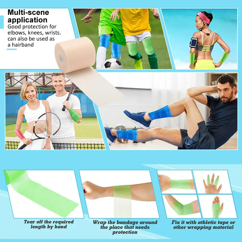 - การใช้งานอเนกประสงค์: พันไว้ล่วงหน้าด้วยเทปกีฬา แผ่นรองและถุงเย็น ป้องกันการเสียดสี ติดสนับแข้ง หรือสร้างผ้าคาดศีรษะชั่วคราว